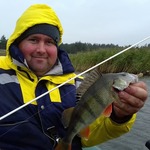 Метрів 30 від берега Роман зловив два щурики,я одного-пофоткали і відпустили до мами,окунь "довбав" приманки ..причому всі,які йому пропонували..але розмір міг бути і більшим ![]()