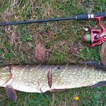 На третю рибалку лох (тобто я) забув телефон. Результат - дві майже одинакові щучки на 1,5кг. на ту же "морковку". Колега пробував віброхвости білих кольорів з різними вставками (чорний, червоний, синій), тички були, але слабі.