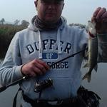 В той момент в мене і Романа Савки майже одночасно клюють залікові окуні,покльовки реалізовані-риба на кукані.