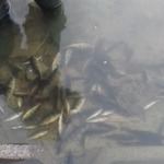 Вчора було мало і сьогодні знов, але меншою бригадою поїхали на рибалку. Окунь покльовував, але треба було його пошукати. Зловлено за пару годин на трьох близько 80-ти штук, які згодом втоплено в одному із міських водойм м. Львова. Як то кажуть і " риби половили і якусь користь принесли.