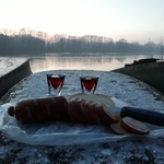 Під вечір температура опустилась нижче нуля і вода почала загустати прямо навколо човна. Думаю сьогодні водосховище повністю вкрите льодом.
