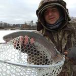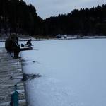 Несмотря на условия, нам удалось буквально за первые 30 минут поднять три форели, кое-кто подготовился и намотал на катушку – зимнюю леску. Сменив пару позиции за следующие 30 минут, не поймав рыбы. Решили двигаться на мостик, и ловить с лунок.
