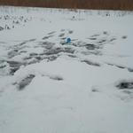 Беру жерлиці, живця, пешню і вперед на лід. Заходячи з берега на лід, він потроху потріскував, але був надійний, так як його товщина була приблизно 5-7 см.