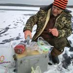 И мы не прогадали.С первой просверленной лунки у Вовы 3 рыбы за 3 минуты.