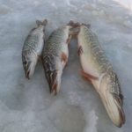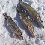 Так сьогодні під кінець зими нарешті нормальний лід і навіть клювало на відміну від початку сезону. Так окрім цих трьох штук було і ще дві щучки які поплили дальше бо малі і дві покльовки які я прзівав були майже повні розмотки. І як показує практика клює тоді коли немає живця, і не ловиться у той час він.