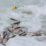 Во второй половине дня вдруг кто-то включил рубильник клева. Как по команде рыба поедала все что ей предлагалось. В эти счастливые моменты удочки дольше находились на льду, чем в воде. Приходилось постоянно опускать снасть, после эффектной поклевки вытягивать клюнувшую рыбу, заряжать мормышку и… далее вновь все по кругу. Здорово мы отвели душу!