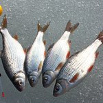 На следующее утро мы уже были во всеоружии. Пришли на проверенные места, закормили и принялись ждать. К нашему удивлению повторялся сценарий прошлого дня. Плотва клевала очень вяло, полностью игнорировала червя и опарыша, лишь изредка интересовалась мормышкой и мотылем. По моим наблюдениям на тонкие оснастки и крохотные мормышки регистрировалось больше поклевок. Оптимальным вариантом в данных условиях оказалась тонкая и одновременно прочная леска SunLine Siglon в тандеме с вольфрамовой дробинкой Shark медного цвета. Также плотва отменно интересовалась небольшим рижским бананом. Все удочки были размещены на расстоянии одна от другой не более полуметра, но рыба с завидной регулярностью клевала только на некоторые из них.