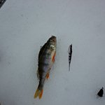 Окунь был обнаружен на выбросе 30-40 метров, и он предпочитал не большие приманки Select relax 1" , и Target 1.6" , так-же другие куски от приманок.