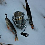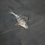 У полосатого был не большой выход с 13-00 и примерно до 14-00, поймали пару десятков этого мелкого и уже с икрой окуня, мелкий, вредный, но хоть что-то на общем фоне очень низкой активности.
