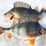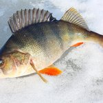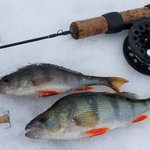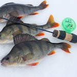Наиболее активный клев наблюдался ранним утром, а вот уже после полудня активность окуня сошла на нет. Из сотен лунок приходилось с трудом «выковыривать» одиночных несговорчивых полосатиков.