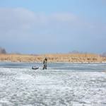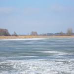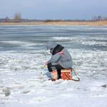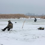 Закрывать сезон подледной ловли решили на Киевском водохранилище в плавневой зоне. В данных местах ледяной панцирь все еще достаточно толстый, местами около полуметра, хотя повсюду уже образовались закраины и коварные проталины.