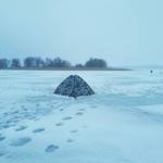 По совету товарища едим на Мартовской залив. В 6 утра мы на льду, погода шикарная небольшой морозец и ни какого признака дождя. Дойдя до места начинаем мерить глубину, находим заветные 5 метров, решаем ставить палатки. Прикормка стандартной рецептуры: семечка, панировочные сухари, горох сваренный в пюре и конечно же кормовой мотыль.