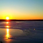 Дорого минулась без пригод і ось ми вже зустрічаємо схід сонця на березі величезної водойми. Фото ніколи не передасть всієї краси та емоцій від зимового сонця, яке поволі піднімається з-за лісу і його перші промені розбігаються по блискучому льоді.