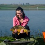 Зранку в неділю поспав довше,вночі ще підловив три штуки карпиків,коли проснулась Юля я класичний фідер переробив на флет,і закинув недалеко від берегам метрів 50,і тут через 30 хв паравоз,підсік відав Юлі вудку щоб потягалась з карпіком,там віччутя класні вудка гнеться основа шнур діаметром 0.1 і карпик 2.5кг, а сам за підсаком,після того вирубало кльов нівкого нічого не клювало по березі.