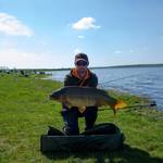 Далі ніч пройшла тихо,зранку проснувся 5 година,а карась як зварйований своїми любовними ігрищами випригував на берег,після 9 години проскакували лавашики від 2-3 кг,а вже блище до 12 клюнув один з Прилбичських монстриків,який заважив 10+,витягувати його було одне задоволення легенький фідерок і десяточка то було щось ,далі клювали тіж самі лавашики..
