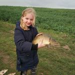 Позакидались десь на метрів 30 і зразу почали ловити плотву тараночного розміру ( при чому першу зловила моя мала яка другий раз в житті тримала вудку). Плотва валила як дурна на опаріка. Десь година 12 в малої перша покльвка Карпа, але нажаль вона не змогла його подолати, а я не встиг і він успішно зійшов. Перезакинули фідера ближче, десь на відстань 10 метрів, і почались покльовки Карпа. Клював спочатку суто на опариш, потім суто на хробаків, жодного із запропонованих нами бутербродів він не захотів. Загалом було задоволено 5 карпів загальною вагою близько 6.5 кг.