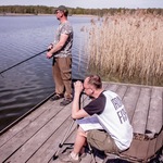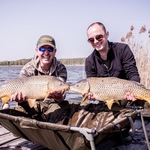 Настав ранок другої доби в нашому активі було 20 риб з яких три риби за 8 кг. В активі Северина – 0 і жодного піка. Чашка запашної кави і в бій. Вітер як і минулого дня не переставав слабшати, а по прогнозу передавали ще більший вітер. Закорм важкою артилерією міняємо наживки й працюємо далі. Вітя розклав своє фідерне крісло, облаштував своє місце, і почав готувати «пральний порошок» - прикормку для флета синього кольору. Вчора це йому не вдалося зробити (розкластися) оскільки обірвав свою годівницю, і ми його загнали спати, щоб він в ночі не обірвав ще одну, а вже в досвіта розклався як нормальна людина. Клювання в Віті почалися відразу – карпик в районі 3-4 кг спокусився на поп-ап і «пральний порошок», і все далі справи в нього йшли все краще. Він приїхав на добу і мав вже в вечері повертатися до дому, тому максимально віддався процесу ловлі, і в результаті побив двічі свій особистий рекорд по спійманій рибі на фідер, амур на 7-8 кг, потім через деякий час амур понад 8 (точна вага в Віті в звіті). Радості в його очах не біло меж, так само й не хотілося йому покидати нас, але робота не дозволяє лишитися ще на добу. Тому сповнений емоцій та позитиву Вітя в вечері поїхав додому. Ми ж продовжували ловити. Серед цікавих екземплярів нам вдалося спіймати амура вагою 12 кг, також коропа 9,5 кг, і багато меншої по вазі риби. В Северина справи йшли не так добре як в нас, всі намагання включити сектор не приносили ніякого результату, і він зібрався і поїхав під вечір теж до дому, оскільки приїхав теж на добу – робота кличе!