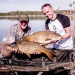 З отриманих даних обираємо дві цікаві точки які плануємо обловлювати на протязі дня на підходах кормового п'ятна, в нічну пору максимально точно в п'ятні. Зі старту приймаємо рішення не кормити рибу, а намагатися її ловити лише за допомогою стіків, адже за змагання її вдосталь погодували до нас. В якості корму ставку зробили на Українського виробника карпового харчування СС Ваіts. Обрали два смаки мед, та спеції, навколо яких і формували свою прикормочну програму. Як написано вище стартанули оснастками зі стіками: права точка спеції, ліва мед на насадках поп-апи відповідних смаків. Перші клювання не застави себе довго чекати. До приїзду Северина в нашому активі вже було шість риб, серед яких одна вагою 8.500. «Хороша людина» Олег приїхав теж в ранці і до приїзду Северина знаходився в нашому секторі, оскільки мав рибалити разом з ним, і побачивши це ельдорадо напевно по думками надіявся на мінімум такий самий кльов у своєму секторі. Олегу навіть дозволили вивести декілька риб. Час летить дуже швидко коли є кльов, постійні пере закидання, виважування, заміна наживок - без перервний процес. Був випадок коли клюнуло щось нууу дуже цікаве, на виважуванні був Іван, і по відчутті було видно що риб більше 8.500 якого ми спіймали раніше. Підвівши до підсака риб починає бушувати біля помосту, намагаючись зайти під нього або в камиш по обидві сторони. Щось подібне витворяють риби в Уляниках. На одній зі спроб запаркувати його в підсак, риба вперлась мордой об обід підсака і вивернувшись зійшла, як потім діставши оснастку з води помітили переламаний гачок навпіл (нам дісталася верхня частина його), але не падаємо духом і працюємо.