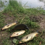 Рибачив в Сапожині з 24 го по 25е травня.Місце ловлі вибрав майже в хвості.закидав і на русло і за ньго під камиш.покльовок більше було під камишом.зловив 15 коропчиків від 1го до 2х кг.попадали і по півкіла.ловив на горох та бойли,прикорм горох.два більшеньких попали на бойли фірми CCBait-екзорцист.решта на горох на волосині.