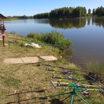 Начитавшись позитивних звітів про рибалку ,саме тут було прийняте рішення випробувати долю.Приїхали на ставок в 19.00 ,вибрали місце між 1 та другою бесідкою(вірніше і1 і2).Місце було вибране з розрахунку що нас 3 рибаків + 2 дітей з поплавочками.закорм був зроблений різношерстний- тут і каши,і горох, і кукурудза атрактанти меліса пелети різних фракцій,навіть з додаванням опариша і червячка.закормлено всім трьом ракетою досить гарні столи для рибки,на різних відстанях і глибинах(перед берегом,руслом,в русло,за русло і під дальний камиш).По факту 1 карп біля 1кг зранку і 1 холоста покльовка вночі.все.при тому,що перепробували і кукурудзу і горох,поп апи і бойли,діповану плаваючу кукурудзу і все різних смаків.В кого здавало терпіння і переходив на карася клювала плотва і дуже рідко карась.