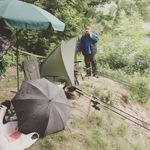 Приїхали на місце десь біля 18-ї вечора. розкладались мабуть годину або більше, поставили невеличкий шелтер, великий зонт та зонт для речей. Все встановили таким чином що б дощ, навіть сильний, не завадив нам ловити рибку.