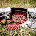 Протоптавши траву в секторі Ваня займається табором та човном, я палками, ПВА мішками та прикормкою. Вирішуємо возити на дві точки. Перша точка пелет великого розміру 14 та 20 мм – кріль, та на старт декілька кг. пелета 4 сезони, які були залиті CSL CC Baits, та цілі бойли CC Baits Virus які заливалися бустером тогож виробника та смаку CC Baits Virus (що цікаво після перемішування бойли покривалися такою цікавою павутинкою яка намальована на пачці даних бойлів). Друга точка: пелет великого розміру 14 та 20 мм – кріль, конопля варена на озері, та бойли цілі CC Baits Exorcist, заливалося все теж CSL CC Baits. Даними смаками користувалися та тримали в руках в перше, хоча з продукцією даного виробника вже були знайомі й досить вдало рибалили. Тому було цікаво як покажуть себе ці новинки. Відкривши пачку CC Baits Exorcist відразу запах прийшов по душі, щось пряне, але на спеції не схоже, запах більш привабливий. CC Baits Virus був дійсно якоюсь зеленою атомною гримучою сумішшю, але рибі я думаю було б теж цікаво щось нове, як моєму напарнику любителю всього нового. Кормити вирішуємо концентровано, не розмазуючи сильно навколо артропи, а насадки доповнювати ПВА мішками і після кожної покльовки підсипати на точку черпачок корма. В ПВА мішках ми використовували ті ж самі дойли цілі та різані та пелет з стік міксом від CC Baits що мав ущільнити крупну фракцію в мішку.