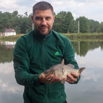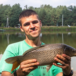 Після десятої Сашко на поплавочок дістав коропенятко грам на 300. Ну ми ж не будемо рахувати цю рибу як залікову, правда? Наші сусіди взагалі вже зібрались і забрались геть, коли нарешті у мене запищав щосили сигналізатор і я дістав коропчика кілограма на півтора. Перезакид і з того ж місця таке саме клювання через півгодинки з приблизно такою ж рибою. Саня теж в цей час зловив кілограмового коропа на свою снасть.