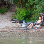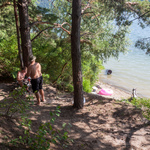 Оскільки рівень води в Дністрі був дуже високим, то ми вирішили рибалити в районі дач за Пижівкою. Там сосновий ліс, який розташований на березі ярусами і ці ж яруси йдуть і у воду. Тому проблем з високою водою тут немає, на відміну від стоянок на Бакоті, де все було геть затоплено, навіть дерев'яні столи з лавками.