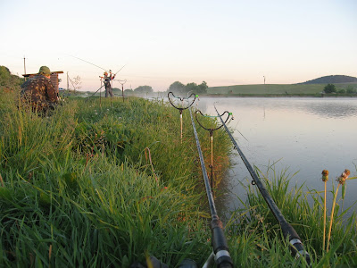 Компаньйони: Ярослав Грабар Погода: температура +27°C, тиск 743мм рт.ст., вітер до години десятої був повністю відсутнім, потім ПдС 1м/с, чисте небо Час ловлі: з 04:30 до 13:30 Місце: між третьою та четвертою бесідками Зловлено: мною: 1 крпик до кіло, 4 карасі грам по 200. Ярослав: 4 карасі і не зміг витягнути під самим берегом товстолоба кілограм на шість Наживка: консервована кукурудза, опариш, пінопласт, венгерські шарики з тіста cucc puffi медові середнього розміру Прикормка: власного виробництва з солодкою кукурудзою Снасті: фідер Нам випала можливість порибалити на ставку села Грушвиця. Виїхали з дому ще в третій ночі, по приїзді на водойму охоронець нас попросив почекати до світанку, щоб виділити нам місце. Після того, як стали на своє місце ми швиденько підготували прикормку та закинули по два фідери. Я один наживив традиційно опаришем, а другий кукурудзою бондюель. У мене о шостій ранку відбувається чітке розгойдування кінчика на фідері, після підсічки карпик на кілошку опиняється в садку. Ну, думаю, зараз почнеться рибалка. Але як виявилось це був наш перший й останній карп в той день. Напишу кілька слів про те, як ловили рибу наші сусіди. Снасті примінялись суто донні: кормушки різних модифікацій(в основному пружини) з кількома гачками на коротеньких повідках. Наприклад сусід на четвертій бесідці закинув десь 5 вудок з різними наживками(хробак, пінопласт, опариші та інше). Десь раз в півгодини виймав карасів, впіймав пару товстолобів та одного карпика. Сусіди ж з третьої бесідки ловили виключно на пінопласт чи оте венгерське тісто. На кормушку заправляли велику кількість магазинної прикормки та поряд залишали вільними 3-4 коротеньких(4 см) повідки з плетінки. На таку снасть у них клював виключно товстолоб. Відразу після цього я звичайно теж поставив додаткового повідка прямо на фідерну кормушку з цим шариком |
