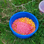 До речі про закорм. Ми мали три зони лову: Сашко Кротюк годував горохом та дрібненими бойлами, Саня Чернюк насипав велику кількість пелетсу (різного всякого) на бустері, а я одну точку забомбив ферментованою кукурудзою, а іншу підгодовував лише кормом з методної годівниці.