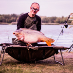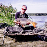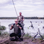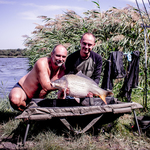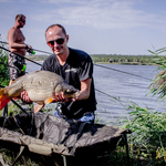 З підняттям сонця наш сектор починав оживати, частота клювань починала збільшуватися і починали працювати всі прути, в порівнянні з першим днем де більшість клювань припадала на четверту палку. Коли першого дня ми були в активному пошуку точок лову, дистанцій та насадок. То після маркування та визначення вже конкретних точок від яких ми осоюливо не відходили протягом всіх змагань. Що стосується насадки то вона була теж вже більш стабільною і постійно приносила рибу, але по черзі на кожен прут пробували іншу насадку, тобто шукали насадку яка б теж нам приносила стабільно рибу, а в кращому результаті крупну рибу, оскільки ми так і не придумали як нам сортувати і відсіювати мілку рибу. Тому ловили все підряд, щоб закрити як умога швидше десять крупних риб. День проходив в постійному русі. Погода сприяла нормальному перебуванню не в палатках, вдавалося навіть позагаряти. Але сильніший вітер так і не вщухав – зі сходом сонця посилювався і лише з заходом сонця трохи слабшав. Час від часу ми спостерігали за активністю сусідів з протилежного берега, складалося враження що коброю працюємо тільки ми, можливо за камишами було погано видно, можливо вони чекали послабшання вітру, можливо тактика така була - мало кобритися. Протягом всього турніру в створеній групі в вайбері лунали жарти і смішні фрази від Генадія команда «Ізюмчанка» - конкурентів там йому не було, завдяки йому настрій у команд всіх був на висоті, навіть враховуючи двох чи трьох команд які навіть не відійшли від нуля в таблиці десяти крупних риб. В обідню пору даного дня 12.45- 14.00 в нас відбувається мега роздача яка нам приносить дві риби за 10 кг. Близько 16.30 невеличкий пік, за ним ще один і ніби потяг набирає обертів починає розганятися звук сигналізатора - підсікаю, а фрикціон не зупиняється і змотує жилку зі шпулі. Відразу йду в воду, а за мною Ваня. Я намагався завжди заходити в воду і виводити рибу на чисту, звільнену від жилок зону, максимально в праву сторону чи в ліву в залежності від палки на яку клювало, а там вже безперешкодно возитися з рибою. даних риб трохи дав нам понервувати й відчувалося що на тому кінці щось більше за попередні екземпляри. Рука починала втомлюватися, а риб трохи давав слабини й давав можливість підтягнути його до підсака, то невгамовно стравлював і забирав ті дорогоцінні метри які не так вже й легко вибороти ще й в такий шквальний вітер який тільки додає опір і важкості виважування. В час коли карп розвертався і змотував жилку зі шпулі ми поглядали на Олега який діжурив на прутах, і нервово курив від визгу фрикціона, оскільки в нашому арсеналі лежало якесь там рідкісне віски для риба за 15 кг. А також Олег в той час відповідав за решту прутів, якщо клюне інша палка то він мав займатися виважуванням, або при непередбачуваному маневрі риба підняти род поди до гори. Через деякий час нам вдалося завести риба в підсак аж у 28 секторі, саме в ті камиши той риб намагався втекти від нас. Запаркувавши риба ми так і пішли у свій сектор через 28 і зайшли з за спини Олега який побачив нашого трофея, вага якого була 13.900. Даний риб пішов в таблицю біг фішів де ми були на 11 місці. Віскі лишилося не чепаним.