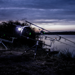 Близько вечора погода почала погіршуватися, і ми почали готуватися до дощу, який по прогнозу мав поливати нас всю ніч. Лишився останній ривок перед фінішем, шанси на призи прирівнювалися «0». Але боремося до кінця, адже вже як мінімум в цьому сезоні ми на цій чудовій водоймі не побуваємо, і хотілося витиснути максимум з цього сектора вже незважаючи на результат і місце в турнірній таблиці. Тому налаштовані позитивно. Результату довго чекати не довелося, клювання і я підсікаю, але по виважуванню риб іде до берега з невеликим супротивом, але відчувається що ближче до берега риба починає давити своєю масою, але поводитися більш спокійно ніж ті різкі монстри. Виважування відбувалося не довго і як завжди запаркували ми його у 28 секторі, поклавши на мат побачили що там риба реально більша від тих що ми ловили протягом чотирьох днів, і час віскаря відкладеного для риба за 15 кг настав, вага наша показала 16 кг. Поливав шалений дощ і була вже темна ніч, вирішили не смикати суддів і дати їм здрімнути «сухенькими» і запаркували його в мішок, а потім на ранок виявилося що той риб заважив 19.500. Ми були здивованими на скільки наша вага бреше, здивованими були Андрій та Віталій що нам вдалося в цьому секторі спіймати такого «кракена». Ця ніч вдалася дуже продуктивною, в нас відбувалися постійно клювання, доводилося будити Олега якому ми хотіли дати відпочити перед довгою дорогою до дому, але потрібно було виважувати й одночасно підсачити, і ще й пере закидатися. Після однієї з риби яку потрібно було звільнити від гачка Олег умудрився загнати його собі в палець, я хотів сфотографувати, але виважував одного з нічних рибів, і він швиденько перекусив кусачками гачка і вийняв рештки. Хоча це не приємно, але добре що він загнав гачка в палець і пробив його відразу наскрізь. Я теж кілька років тому відчув як це забагритися гачком, але тоді він зайшов на половину в палець, і довелося ще пробивати щоб перекусити гачок. Але був такий шалений кльов в ночі й дощ заливав за шиворот що ми навіть особо й не відчули травму Олега, він також звільнившись від гачка, почав виважувати, а ми возилися з перезакиданням і підсачуванням. В ночі нам влетіла риба за 12 кг, і по н рибам. Які б могли нам перекривати нашу десятку – а це риби за десять кілограм, так нам і не вдалося більше спіймати, вся риба була менша бажаної ваги.