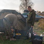 Під вечір почало холодати, прилетіло пару десятків лебедів. То тут, то там скидувалась риба, але зовсім не клювала. Охоронці при нас закопали п'ятикілограмового щупака, який мабуть не переніс чийогось виважування.