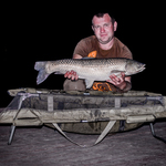 Той риб тримав нас постійно в напрузі вже в котре під час виважування він вспливаючи десь за метрів 50 йшов у верхніх шарах води, ближче до помоста занурювався і прижимався до дна, коли хоч трошки вдавалося його підняти він розвертався і змотував безкінечну кількість метрів жилки знову, більше ніж вузол шок лідера з ліскою нам так і не вдавалося побачити, і тим самим збільшувалася інтрига, що може бути на тому кінці. (найменше хотілося щоб то був товстолоб, які живуть в Ульяниках теж мега розмірів, найбільше хотілося веслоноса якого ми ще ні разу тут не ловили, якого всі бояться – бо він путає всі снасті, рве підсаки) Що цікаво, що вже з 13 вимостки «воно» намагалося вже стрімко йти в 12 сектор, де стояли люди й рибалили, і я переживав щоб він не зачепив їх жилок, оскільки в цьому році ми вже мали декілька сходів через перетирання жилок, між 12 і 13 секторами він під водою має теж якусь там домівку чи перешкоду куди стрімко намагався йти. Десь за хто знає за яким разом мені вдалося підмотати більше жилки й навіть шоклідер на шпулю, і підняти його на поверхню, і ми побачили того хребта і плавника який був мега великий і воно знову розвернулося і вже в верхньому шару води розвернулося і почало знову змотувати жилку, пішла хвиля як від моторного човна яку було дуже чітко видно в ту місячну ніч. І тоді я зрозумів що то може бути дійсно жирна крапка в закритті цього сезону, а мождиво і мій Біг Фіш, мій особистий рекорд, тому для мене було принципово не спустити його і вийти в цій дуелі переможцем, як Ваня каже незалежно хто за палкою, а хто з підсаком, любий мега трофей це перемога і здобуток обох членів команди.