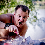 Поки ми поставили табір, замішали прикормку і закинули всі вудилща в воду була вже 15.00, тому вирішили відразу прикормити точки. І після першого спомба відразу поїхала третя палка, не квапливе виважування і риб вагою 10 кг позував перед фотоапаратом, наступне клювання відбулося через сорок хвилин і брат близнюк попереднього риба теж був заведений в підсак, такої ж ваги як і попередній. Хороший початок, не пройшло і години, а в нашому активі дві риби вагою по десять кілограмів. Це вселяло надії на мега активний кльов, але тільки при відсутності сусідів в 13 секторі, які б могли перекрити нам хід риби, і нам тільки лишалося б підловлювати жителів заливу який знаходився з правого боку нашого сектора. Але як надалі вияснилося що сусідів не буде і в нас є всі шанси добре порибалити. Близько 18.40 знову клювання, після виважування і вдалого заведення риби в підсак вага показала 7.000 (якийсь зальотний не формат). Після чого вирішили трохи потужніше закормити точки вже на ніч. А далі приготування вечері, девіз якої «М’яса багато не буває!», тому в вечірньому раціоні в нас були стейки і тільки стейки з овочами. Поки палили, смажили і різали овочі для салату, сонечко сховалося за горизонт і вечеряти довелося у світлі налобних ліхтарів, а далі кава з вафелками. Під час кавобрейку зателефонував до Вані наш товариш з Луцька, який по незрозумілим причинам образився на мене і всю йому потрібну інфу. вияснював через Ваню, ще там говорив якісь "жартівливі гадості" на мене, але під час цієї розмови відбулося клювання, шалений паровоз на другу палку, і цього разу риб пішов в праву сторону (хоча в більшості випадків риба йшла від камиша на відкриту воду), цього ж разу навпаки, вона нагло зтравлювала жилку, а я просто тримав в руках палку з катушкою та послабленим фрікционом, і дивився на шпулю як з кожною секундою зменшувалася кількість жилки на ній. І трохи почав переживати за ті камиши в які валило щось не відоме на тому кінці жилки, помалу почав підтягувати фрикціон і пробувати розвернути риба в іншу сторону, і мені це вдалося. Жилка почала стравлюватися паралельно йдучи протилежному берегу, так само вже в сторону відкритої води, але побоювання були тільки через кількість жилки на шпулі, чи вистачить мені її з такими темпами змотування. Помалу, помалу почав підмотувати кожен метр до себе. Ваня побачив ці всі маневри і кинув телефон та підбіг до мене взявши підсак в руки, в ході виважування він декілька разів то ложив його назад на помост то брав в руки і в проміжках зкурював цигарку. Розвернувши те чудо в протилежну сторону від залива з камишами воно почало йти на 13 вимостку, я намагаючись тримати в натяжку жилку перейшов теж на неї, не даючи рибу зайти під неї і вже з 13 вимостки спокійно виважувати рибу без всяких перешкод. Давши такий гак мені вдалося підвести риба до помоста і лишалося метрів 10 до підсака як воно розверталося і мені лишалося просто тримати палку в руках і чекати поки це «воно» зупиниться. Ніч була тепла і місячна (повний місяць), небо було без жодної хмаринки, і складалося таке враження як було ніби сонячне затемнення в день, все було добре видно без ліхтариків, а ми з Іваном все ще тягалися з тим рибом, вже Вані надоїло чекати і він каже що готовий змінити мене на палці, але я вирішив боротися до останнього. Було ще побоювання що жилка 0.23 може не витри