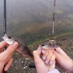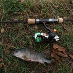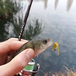 Таня ловила Окуньків під берегом на ваги 0.7 - 1.5г. Я пробував шукати рибу на дальній дистанції поводковими оснастками.