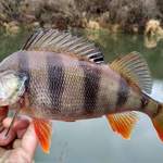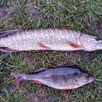 В понеділок 10.12 певно вже остаточно закрив джиговий сезон на Горині. У цей день зима порадувала плюсовою температурою та більш менш комфортними умовами ловлі. Правду кажуть, зимою риба таки стоїть локально, у крайньому разі в моєму випадку ця теорія справдилась. Обійшовши 3 гарних "робочих" місця і не отримавши ні тичка, подумав, що лишусь без риби. Проте на черговому повороті з невеличкою ямкою все таки отримав свої покльовки. Спочатку під берегом мою Тіогу з'їв непоганий окунь, на наступному ж закиді вже ближче до русла чітко вдарив 600 грамовий щупачок. Взагалі це місце відрізнялось від інших тим, що на поверхні дуже активно вів себе мальок, отже і хижак тут стояв. Після цих спійманих риб десь за 2 години рибалки мав лиш один невнятний тичок. Груз використовував 16 г, спрацювала Тіога 2.9 в ультрафіолеті.