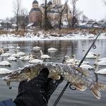 Періодично лебеді заважали нам закидати приманки в найперспективніші місця. Але ми не ображені на них - з такою кількістю лебедів зимова річка ще гарніша!