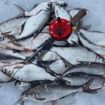 Осуществляю первую проводку, кивок слегка сбился с работы – я тут же размашисто подсек. Есть! Рыба на крючке!!! Аккуратно провожу вываживание. Совсем скоро из лунки показалась упитанная белоглазка. Очень красивая рыба!