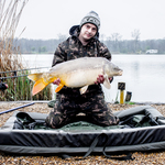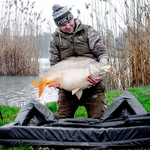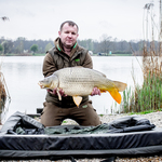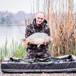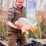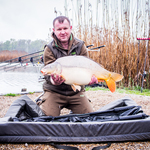 Перша покльовка не завтсаила себе довго чекати, в 11.30 перше клювання сезону 2019 на мега прекрасному озері Шмубар, запрацювала точка навпроти дальнього острова з 110м., підсікаю – Я, по відчуттям не сильний супротив риби, думаю що дає в знаки що риба ще не відійшла від зими й поводитися в'яло, через декілька хвилин вдається завести його в підсак і покласти на мат, в сумку і на ваги (новинка в моєму арсеналі – механічні ваги Reuben Heaton Standard 4000 Series Scale Ukraine 50kg Limited Edition в Українському стилі зі шкалою в 50 кг.) де є можливість відрегулювати (зтарувати мішок чи сумку відразу і не проводити даних маніпуляцій повторно), але шкала з кроком 200 гр. (тобто ваги для трофейної рибалки) так от вага першого нашого коропа зловленого на оз. Шумбар показала 5.500, клюнув на одинарний двотонний поп ап CC Baits Two-Tone Pop Ups . Не гігант, але для нас дуже важливо не спустити першу рибу, і тоді рибалка має піти по наростаючій, що нам і вдалося зробити. Стало цікавіше і веселіше, задачу номер один (відійти від нуля) виконано, далі завдання – риба за 10 кг.