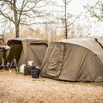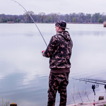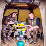 На березі два не закинуті палки, які переоснащуємо та назад у воду, і догодовування точок та очікування на нічних гостів, та рибів за 20 кг.: - «Апетит приходить під час їжі»; так само і в даному випадку, зі збільшенням клювань і ваги риби, хочеться більшого. З настанням темноти почали займатися приготуванням вечері. Погода була без змін – лив дощ і навіть не було натяків на те що він закінчиться, Ваня подивився прогноз на час нашого перебування на озері, і він був невтішним. Чотири дні безперервної води з неба і місцями грози. Мені було байдуже, оскільки я запасся речами по повній і міг міняти речі як рукавички, але новий дощовичок Fox Chunk LW Camo RS 10k дозволяв комфортно перебувати навіть під самим дощем (ніде нічого не затікає, весь одяг під низом сухий, комфортно притулити важку рибу до тіла під час фотографування не боячись що все буде в слизі, і саме головне в ньому не парить та навіть під час постійного перебування в ньому під дощем він не промокає), у Вані справи з запасним одягом були трохи гірше, під час всієї рибалки він замочив всі речі не маючи дощовика, і мені його було трохи шкода, коли після котрої риби він в тих мокрих шмотках мостився на розкрівушку.