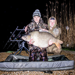 Повечерявши, перезакинувши всі прути, в нічній тиші ми помалу почали залазити у свої спальники. Не встигли ми задрімати й о 00.10 нас піднімає шалений звук сигналізатора, черга боротися з капом Вані. Трохи згодом він розуміє, що оснастка якось дивно себе веде в воді, вже ближче до берега бачимо обмотану навколо нашої лєски чужу оснастку з прив’язаним на глухо до лєдкора шоклідером (мені здається такі речі неможна робити, оскільки той риб плавав майже з 10 м. шнурка), не форсуючи заводим рибу в підсак. Як виявилося то була чиясь риба яка зійшла обірвавши оснастку на вузлі лєски й шока, і в подальшому пропливаючи обмоталася навколо нашої лєски, рибу звільнили й записали у свій актив чуже грузило з лєдкором і кліпсою. Рибу на ваги й вага завмирає на позначці 23.900 – новий особистий рекорд Вані який до того становив 18.500, хоча і заплутаний в нашій лєсці, але заведений в підсак і звільнений від чужого монтажа. Сказати що Ваня був радий своєму новому рекорду – це нічого не сказати. Сон і втома кудись зникають, починаєш забувати за змоклий під час виважування одяг. Фотосесія з маніпуляціями освітлення штативами й т.д для хороших фото з новим рекордом Вані. Цієї ночі відбулося ще одне клювання о 03.30 (дзеркальний короп вагою 11,500) і до самого ранку тиша, яка дала нам трохи вздрімнути. З настанням ранку та ранковою кавою нас потурбував знову звук сигналізатора, виважування і короп вагою 14,000 - насадка дві кукурудзи з підрізаним поп-апом CC Baits Fluoro Pop-Ups (Honey) 10 мм.