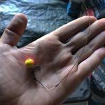 Первые палки у нас пошли в воду где-то около 2-3 часов по полудню. Чтобы понять какие вкусы сейчас будут по душе карпу, мы наделали разных миксов. Это были: Devil Squid, Krill, Robin Red, Live system и Black Currant. И пока мы обсуждали планы и дальнейшые действия, получили поклевку на Робин Рэд с чесноком.