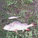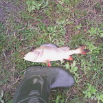 Рішив поспінінгувати. Моросив дождь. Окунь був прошений. Прополоскавши з десяток приманок, я все тки підібрав ключик. Покльовки ледь помітні! Зловлено 3 окуня за 3 години! І один окунь на пів кіло (який на фото) був витягнутий під берегом! Окунь дохлий і вздутий! Слідів укусів не було! В мене підозра на електролов!!!