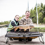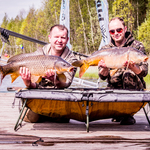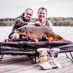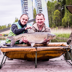 Отже, в районі 10.00 палки завезені й ми в очікуванні клювання прийнялися готувати сніданок та насолоджуватися відпочинком і Білоруською природою. Перше клювання в нас відбулося в 12.20 з дальньої точки, на другу палку яка була завезена за кормове п'ятно. Короп відразу стрімко намагається зачепитися за підводне каміння, тому лізу в човен і за рибою, і чомусь вирішив взяти з собою підсак які теж як нововведення видають на водоймі разом з матами та сумками для зважування, але якість того трикутного підсака не фонтан і мілка сітка не дозволяє нормально керувати ним при виважуванні, тому риба вдалося завести тільки з 3-4 спроби, коли він конкретно втомився і на бочку зайшов в підсак. Вага показала 9.500 спрацювала насадка CC Baits Fluoro Pop-Ups Pineapple & N-Butyric Acid з двома кукурудзами. Після чого настало тривале затишшя, погода почала мінятися, то парить, то вітер, але кожні три години, ми намагалися перезавозити оснастки в надії підібрати ключик до риби. Від знайомих чув що особливість даного сектору саме в нічній ловлі, а протягом дня на велику кількість клювань не варто розраховувати, і риба прохідна. В ранці вона йде в сторону дамби, і даний прохід ми прозівали через маркування та приготування корму, а в вечері повертається назад. Хоча в теплу пору року вона також виходить на мілководну частину водойми погрітися, проте даний день теплим було важко назвати. Наступне клювання відбулося аж о 17.25 і теж з дальньої точки на перше вудилище, виважування і короп вагою 7.000, перезавозим і через годину знову клювання на дану палку і знову короп 7.200 зпрацювала насадка CC Baits Fluoro Pop-Ups, Pineapple & N-Butyric Acid з двома кукурудзами – пелет мовчав. Далі включилася третя палка з ближньої точки й знову перша палка. За дві години часу в нас відбулося чотири клювання і ми отримали сигнали з обох точок, значить місце ми обрали правильно і лишається нарощувати темп. Після кожного клювання ми підкидали по черпачку корму на точку, щоб максимально на довго затримати рибу. З 20.00-22.00 беремо ще три риби дві з який знову на першу палку. Почало темніти і ми взялися за вечерю, та замариноване на передодні білоруське м'ясо, в надії що паровози нам не дадуть перекусити як це відбувалося в Хорватії, але наступну серію покльовок ми отримали тільки о 00.00 з ближньої точки – амур на 4.000, далі дана точка почала приносити стабільно кожну годину півтори рибу і з цієї точки ми взяли найбільшу рибу даного дня коропа на 10.000 який клюнув на CC Baits Fluoro Pop-Ups Honey з підсадкою тигрового горіха. Клювання продовжувалися до 3.00, а далі наступило затишшя аж до ранку і тільки о 7.10 ми взяли наступну рибу. Загалом за першу добу нам вдалося отримати 15 клювань і спіймати 13 риб загальною вагою 112 кг., а також на першому вудилищі мали один зачеп та один схід. Ще одне нововведення з цього року – це використання безбородих гачків на озері Черніца (охорона постійно перевіряє оснастки та поводки, тому жартувати з цим, "тіпа проканає" і ніхто не побачить, там не варто, все перевіряють).