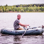 Проснулися ми близько 5.00-6.00 відразу взялися за маркер, карту сектора та дальномір, щоб зрозуміти картину яка захована перед нами в товщі води. Після першого променя ми відразу знайшли межі русла вихід з якого був на досить близькій та не звичній для нас відстані 69 метрах, далі йшов підйом на 0.5 метра до відстані 90 метрів, і далі суцільне поле. Але на другому забросі ми чіпляємо маркер за підводне каміння, про яке ми чули від знайомих, і щоб не обривати маркер вирішуємо взяти на прокат лодку, хоча спочатку не планували нею користуватися, оскільки з цього року ввели обмеження по дальності завоза човном до 120 метрів. Це пов'язано з тим що коли одночасно задіяно 20 та 1 сектори і які до того починають возити човном, то кльов в решти секторах практично зникає повністю. Але на такій відстані навіть і далі можна ловити спокійно з берега. Проте ми вирішили не жертвувати рибою, та оснастками втрачаючи їх в корягах та каміннях і взяти лодку, і при подібних траблах, спокійно виважувати рибу з лодки. Вартість надувної лодки без електромотора 15 бел. рублів, з електромотором 25 бел. рублів; і в принципі не пожалкували. Маючи ехолот в наявності ми вже детально дослідили структуру дна, глибини. Через велику чистоту та прозорість води, можна було навіть візуально побачити що робиться на глибині в один метр. Після години плавання по сектору ми обрали для себе три точки:
