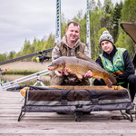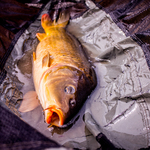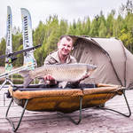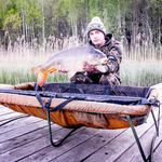 Поступово мій організм почав здаватися від безкінечного виважування і маханням веслами (всю ніч завозив оснастки – я, Ваня контролював за сходженням лєскі зі шпуль, щоб не було заплутувань, та регулював натяжку оснасток після завоза, а також в проміжках поки я вертався після перезавоза він готував нову партію заряджених поводків зі стіками). Близько четвертої ночі я вирішив прилягти трохи відпочити, оскільки Red Bull ми випили весь в перші два дні тому підзарядитися не було чим, а від кількості випитої кави вже починало колотити. І знову клювання, кажу Вані що нехай виважує і коли риба буде вже майже біля помосту нехай тоді кличе я допоможу з підсаком, але риб зібрав дві палки які прийшлося вимотати і розплутувати, хоча рибу Ваня все ж таки дістав. Поки він розплутував я тим часом дрімав, і коли треба було ті три прути перезавезти я дав йому зрозуміти в коректній формі, що з мене досить, він теж не менш втомлений лишив вимотані три прути на род поді й пішов спати, через годину клюнула остання палка яка стояла на род поді, ми дістали рибу, і я помітив три прута які стояли вимотані на род поді. Ваня розказав що я його майже послав далеко з тим перезавозом і не було кому перезавезти. З самого рану вже трохи виспаний я пере завіз всі палки знову, і ми почали помалу збиратися, хоча на клювання вже не сподівалися, оскільки під час збору в нас ніколи не їхала палка, хоча прути ми знімали з род пода в саму останню чергу. Але цього разу трапилося диво – і завищав сигналізатор, нам вдалося спіймати рибу під час зборів – амур на 8.000. І в результаті за цілий день тиші та безкльов'я починаючи з ночі й до 5.00 нам вдалося спіймати 17 риб вагою 115.4 кг. Думаю що якщо я б перезавіз ті три прута і ми продовжували б рибалити далі то за ті півтори дві години ми змогли б дістати ще зо 3 риби як мінімум, але маємо що маємо. Експериментальна ядерна суміш запрацювала і дала нам найбільшу кількість риби в порівнянні з іншими днями і добами в цілому, хоча я не думаю що ще колись доведеться так впадати в крайнощі.