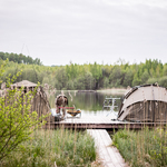 Дорога пролетіла швидко і ми бачимо дорожній знак с. Метлічіци, через яке нам потрібно було проїхати, а далі ґрунтовою дорогою ми заглиблювалися в лісову місцевість ще 10 кілометрів, на шляху траплялися хутора по три чотири повністю дерев'яні автентичні хатки, здавалося хто може жити в такій глуші, але дорога ще далі заглиблювалася в глиб лісу. І ось ми бачимо вказівники з дерев'яними табличками, і напрямком руху до озера ще 4 км, трохи часу і перед нами вїздні ворота на територію озера і дамба з секторами від 6-13, і всі ті краєвиди які я до того бачив тільки на відео та фото рибалок які мали змогу тут побувати. Перед нами відкрилося дійсно мальовниче лісове озеро, зі своїм водним плесом в якому відображалося сонце яке вже сідало за верхівки дерев, відразу в очі кидалися великі помости та шикарні сектори в лісовій частині, а також плаваючі велетенські помости.