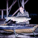 І близько 20.30 почалося, перше клювання третьої доби запрацювала крайня ліва палка, амур на 8.500, перезавожу оснастку через 15 хвилин їде четверта палка і знову амур, далі третя палка і знову амур на 10.200, знову перша палка – теж амур 5.000. Розпочався так зване – Ельдорадо, прути їхали кожні пів голини. Я з лодки майже не вилазив, не встигав завести оснастку і повернутися назад як їхала нову палка, як треба було завозити нову. Кожну оснастку ми завозили з величезними стіками в основі яких був стік мікс CC Baits Honey (Мед); пелет різного діаметру і крушені варені бойли. З таким темпом я прекрасно розумів що надовго того корму що ми всипали може не вистачити, але сипати вже не було що, тому возимо і ловимо. Сусіди які приїхали рибалити в 19 сектор, спочатку дивилися як ми возимо і тягаємо рибу, а потім їм це надоїло і вони почухали спати, протягом всієї ночі я так і не побачив в них жодного клювання. Ми ж рибалили нон-стоп, вже до опівночі ми мали одинадцять клювань і всі реалізовані, риба клювала безперестанку проскакували екземпляри на 10.000 та 11.000, але хотілося спіймати рибу за 15.000.