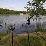 Приїхали на відпочинок в будиночок. Рибалити дозволяють тільки світловий день. Ціна 200 грн. Кормив запливаючи ,горохом. Обмеження в 5 кг. На поплавок в березі 500г коропці клюють на все. Комарів дуже багато. Ще було спіймано 2 карасі, також на горох.